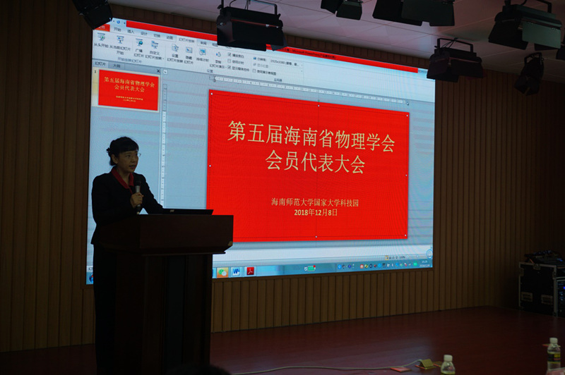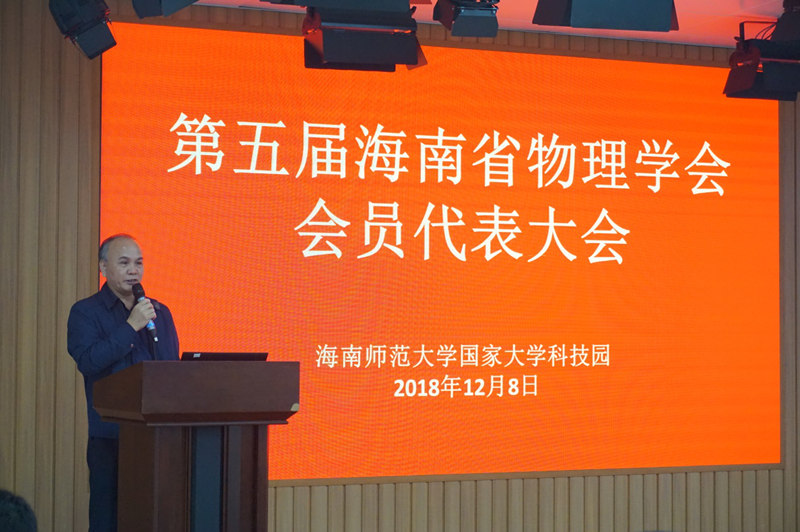 吴丽莎部长致辞,并宣读海南省科学技术协会对于海南省物理学会换届的批复。第四届理事会秘书长、海南师范大学物理与电子工程学院书记林吉同志介绍了海南省物理学会第五次会员代表大会的筹备情况,做了海南省物理学会第四届理事会工作报告、第四届理事会财务报告、海南省物理学会章程修改说明,会员代表在会议上进行了审议和表决。