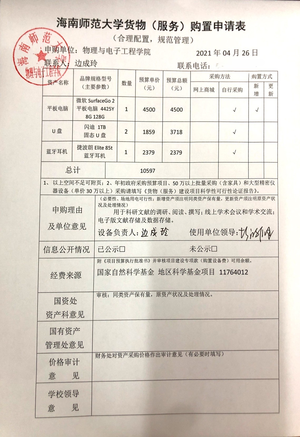 物理与电子工程学院2021年采购材料和设备公示如下,公示时间4月27-30日。