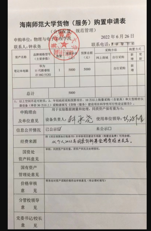 物理与电子工程学院钟承尧老师急需采购设备如下,公示如下,公示时间:2022年6月27日-6月30日。
