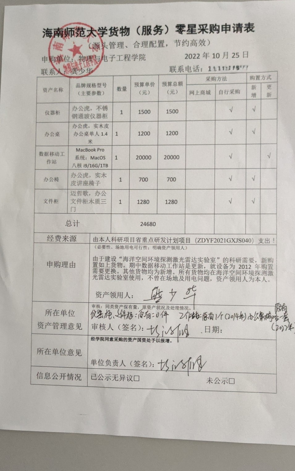物理与电子工程学院龚少华老师急需采购实验室设备,公示如下,公示时间:2022年10月25日-10月28日。