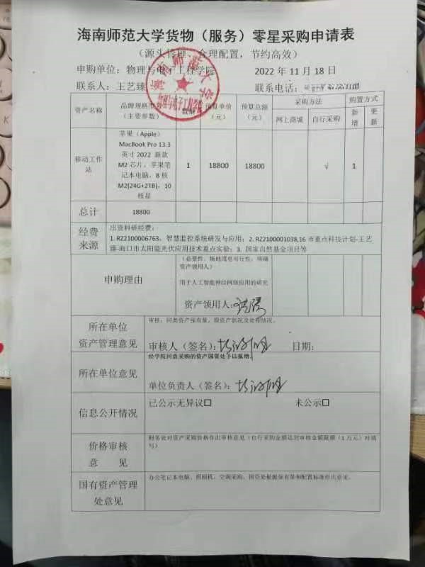 物理与电子工程学院王艺臻老师急需采购实验室设备,公示如下,公示时间:2022年11月18日-11月23日。