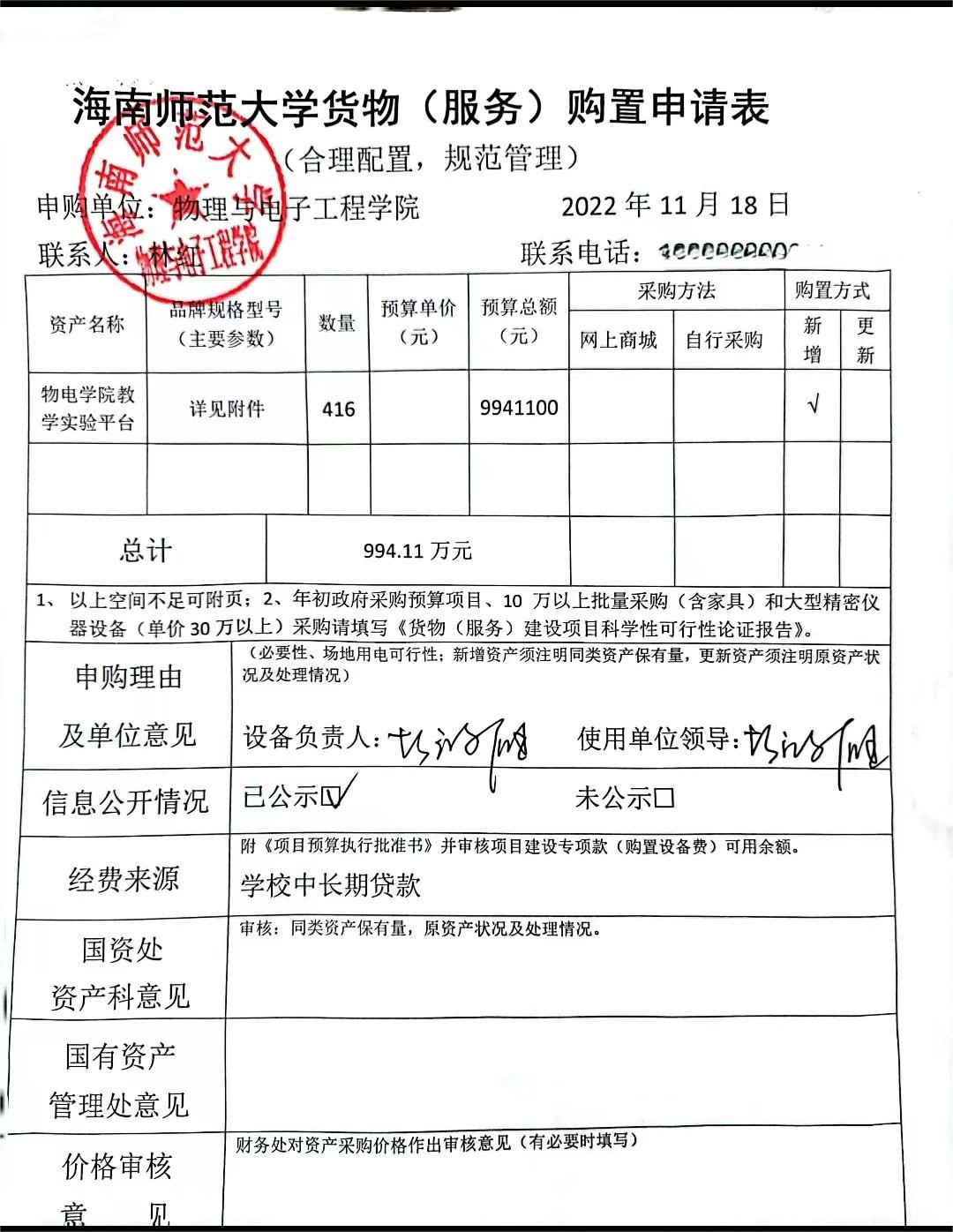 物理与电子工程学院教学实验平台需要采购设备,公示如下,公示时间:2022年11月18日-11月23日。