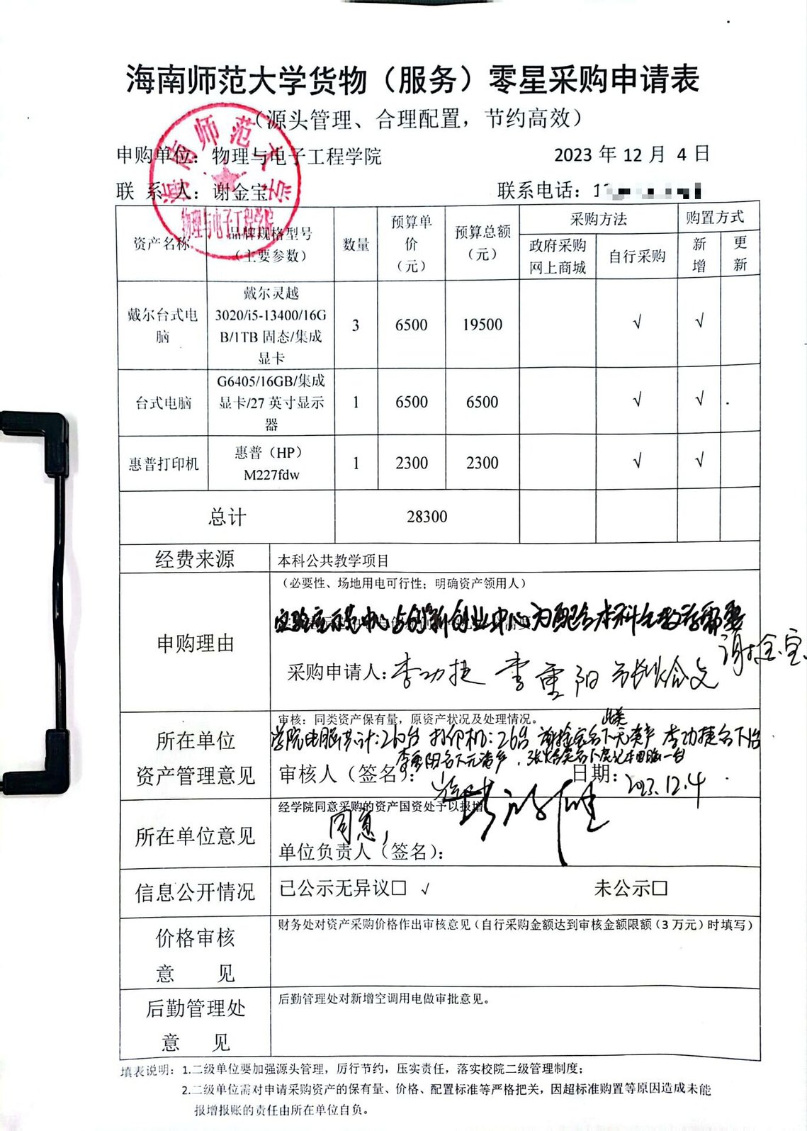 物理与电子工程学院实验中心与创新中心购买办公设备,公示如下,公示时间:2023年12月4-12月7日。