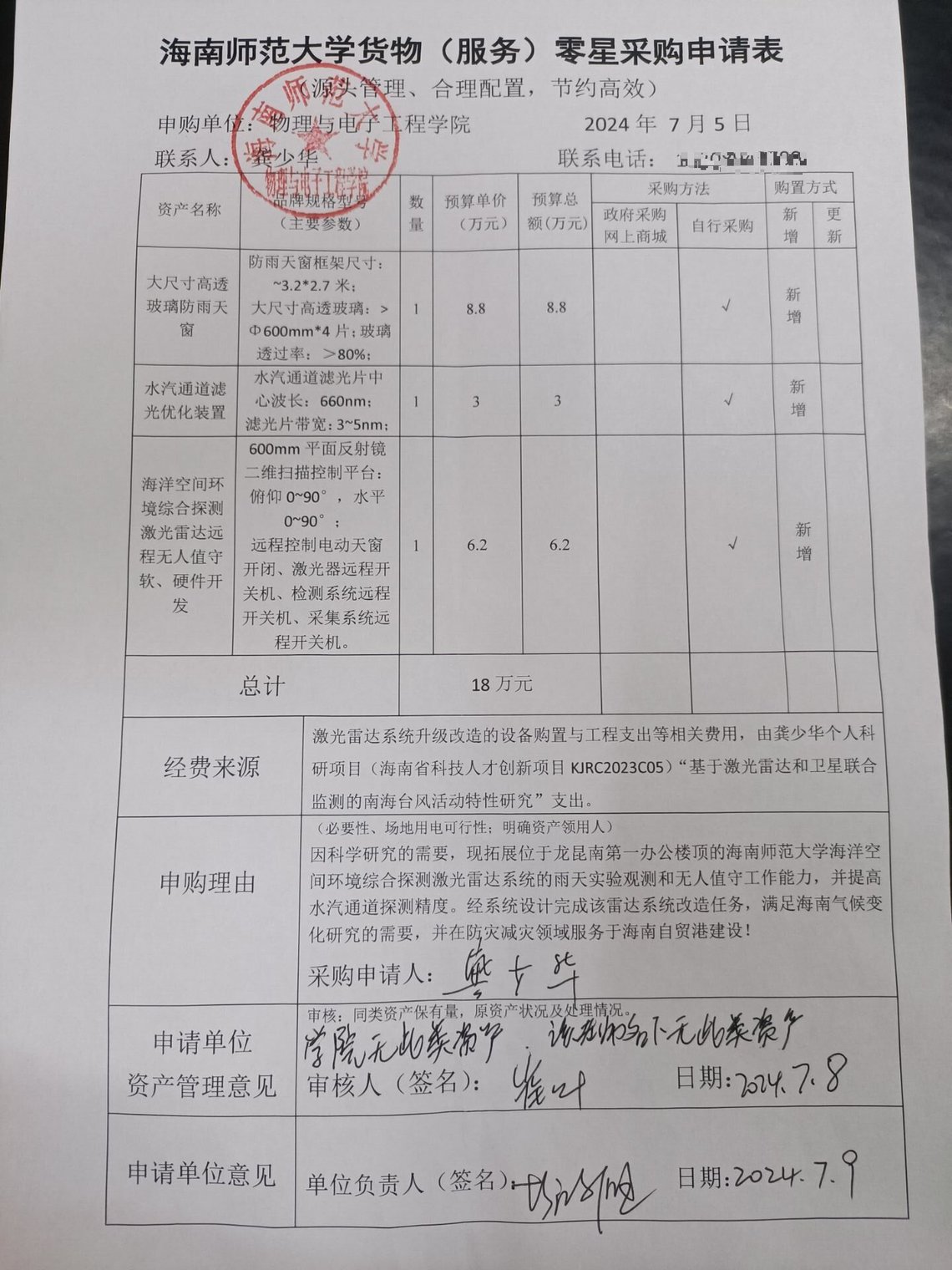 物理与电子工程学院龚少华购买办公设备,公示如下,公示时间:2024年7月9日-7月12日。