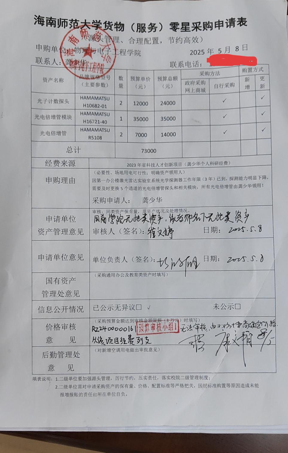 物理与电子工程学院龚少华购买办公设备,公示如下,公示时间:2025年5月8日-5月13日。