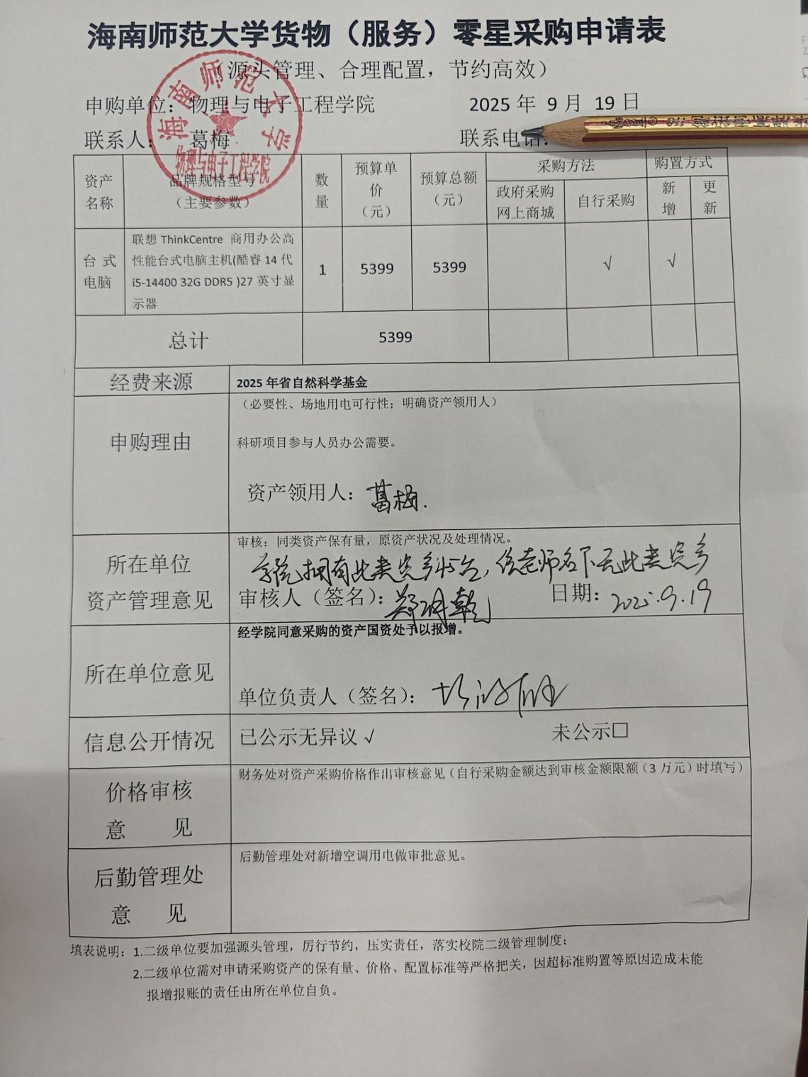 物理与电子工程学院葛梅购买科研设备,公示如下,公示时间:2025年9月26日-9月30日。