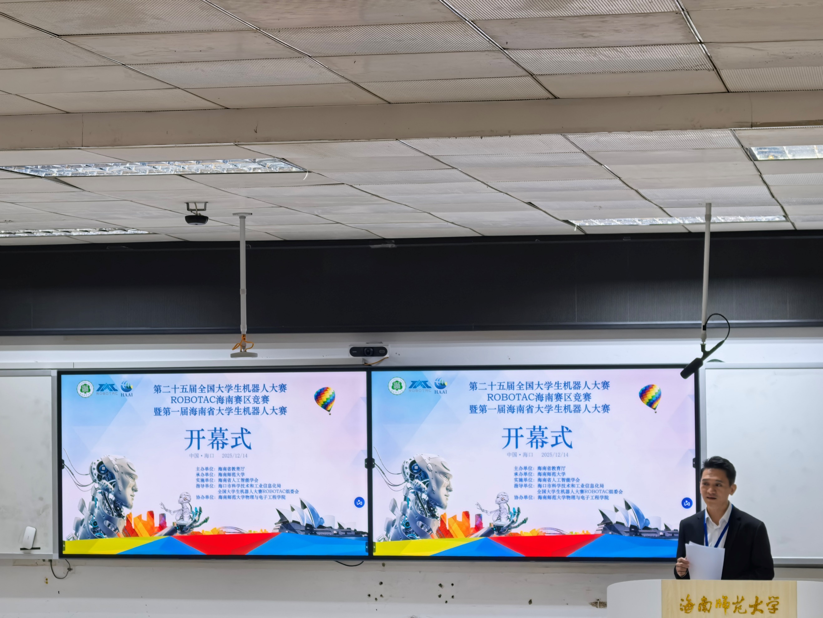 12月14日,第二十五届全国大学生机器人大赛ROBOTAC海南赛区竞赛暨第一届海南省大学生机器人大赛在海南师范大学圆满落幕。本届赛事由海南省教育厅主办,海南师范大学承办,海南省人工智能学会实施,海口市科学技术和工业信息化局和全国大学生机器人大赛ROBOTAC组委会指导和支持,海南师范大学物理与电子工程学院协办。