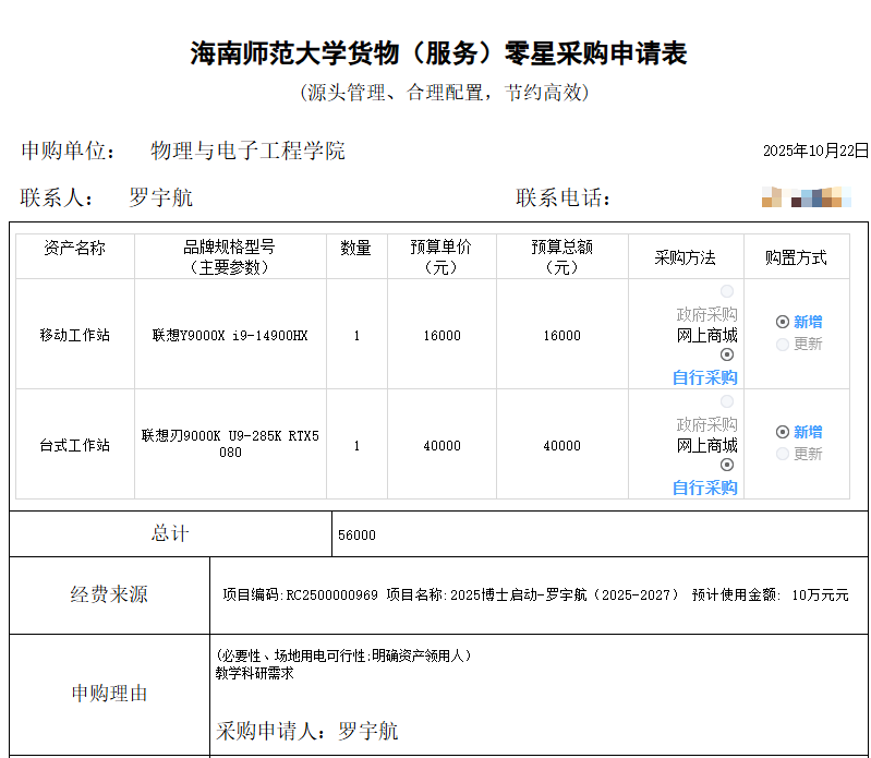 物理与电子工程学院罗宇航购买实验设备,公示如下,公示时间:2025年10月28日-10月31日。